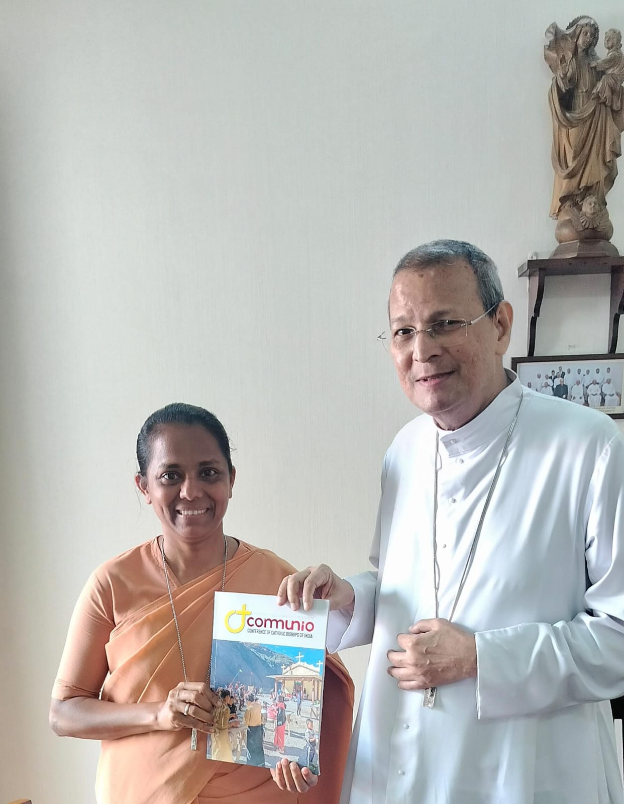 Bengaluru, CCBI Secretariat ,22 August 2025:Sr. Margarita Dias SCB, representing Communio, paid a cordial visit to His Grace Most Rev. Dr. Joseph Kalathiparambil, Archbishop of the Archdiocese of Verapoly. The meeting was a moment of blessing and encouragement, as Sr. Margarita presented the vision and mission of Communio and explained its upcoming projects for youth and missionary animation across India. His Grace warmly welcomed the initiative, imparted his blessings upon Sr. Margarita, and expressed his joy and gratitude for the continued missionary efforts of Communio in strengthening the evangelizing mission of the Church in India.